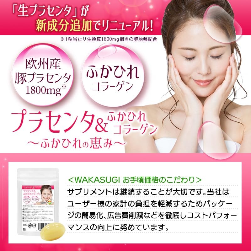 プラセンタ&ふかひれコラーゲン 120粒 約4ヶ月分 欧州産豚プラセンタ1粒1800mgに増量 新成分ふかひれコラーゲン追加 第二弾ふかひれの恵み 豚プラセンタ×低分子コラーゲン ふかひれコラーゲン W配合 低分子コラーゲン ヒアルロン酸 コンドロイチン含有