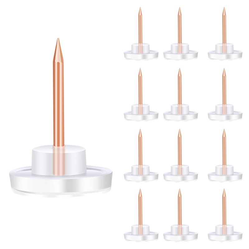 - Clear Thumb Tacks: 0.87 inche in length, 0.47 inche with clear pastic head and rose gold steel needle point, they are strong enough to withstand the pressure of a robust thumb. With the help of a soft hammer or a mallet, those wall tacks could go in a wood even a drywall easily, so that you could hang some light objects like posters, decorations, lights, wall tapestry, etc.