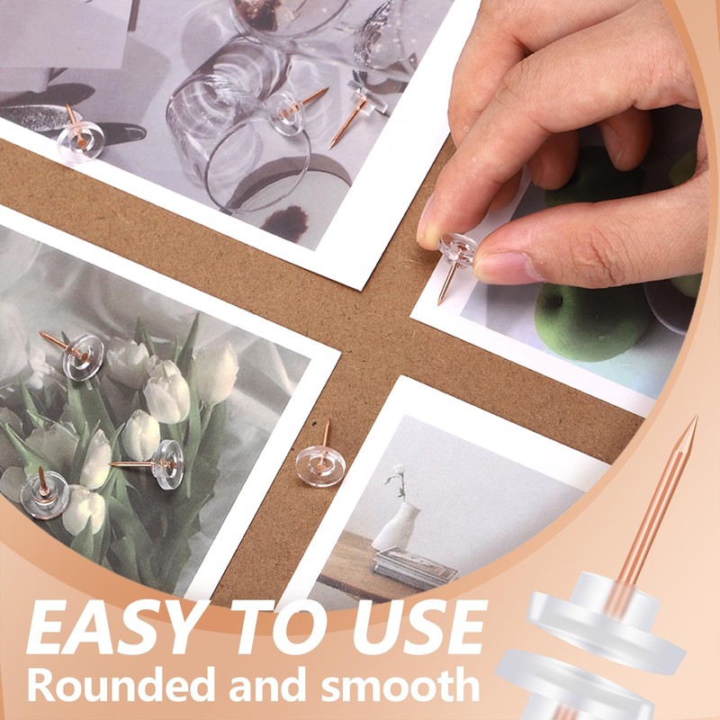- Versatile Usage: Clear rosegold thumb tacks for secure paper, photos, and more to bulletin boards, corkboards, foam boards,
