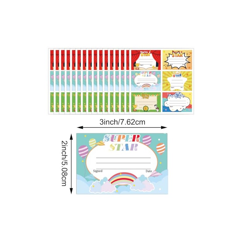 - Student Award Certificates Stickers Bulk Pack – With 120 pieces spanning 6 unique designs (20 per style), this set ensures ample supply for weekly recognition programs, subject-specific achievements, or team-building activities, supporting consistent reinforcement of positive behavior.