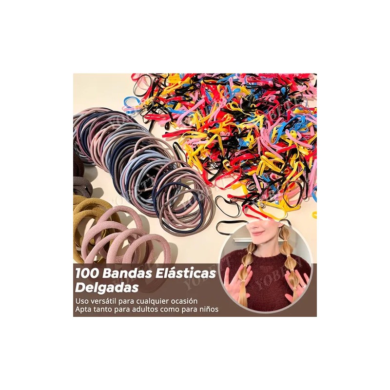 - Bandas con excelente elasticidad que no dañan el cabello ni se rompen fácilmente.