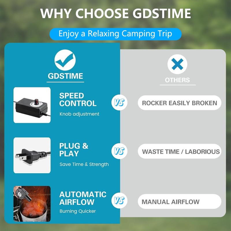 - Widely applications;Powerful airflow for inflatables or as a BBQ tool,Inflatable blower, outdoor campfire events or indoor ventilation, etc. Suitable for fireplaces, fire pits, grills, smokers and camping, indoor and outdoor fireplaces and any small electronic equipment cooling ventilation.