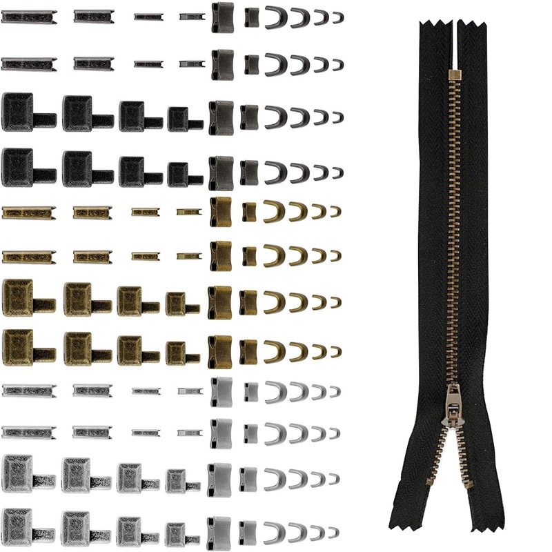 - Package Content: You will totally get 60pcs Zipper accessories, including 12 sets zipper boxes and insertion pins for open-end zippers, 12pcs zipper bottom stop and 12 pairs of top stop for close-end zippers.