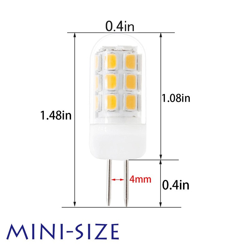 Brand: XRZT Base: G4 Dimmable: yes Power: 3.5W Lumen: 320LM Size: 1.4in/0.4in Net Weight: 0.2ou CRI: Ra>80 Voltage: AC 110-120V CCT: Warm White 3000K Material: ceramic body/crystal glass cover Beam angle: 360 degree Package: 5pcs It is recommended to use a LED dimmer / SCR IR Dimmer to control the brightness. Using a traditional dimmer will result in flicker or light wane. Attention: ①This G4 LED bulb is powered by AC 110-130V circuit,CANNOT WORK under 12V or 240V circuit. ②Lights may flicker on low setting, this is a normal phenomenon. You can avoid working under low setting. ③Make sure you get the correct size. G8 Base is wider than G4 Base(Please check the contrast picture). ④If the bulb is not compatible with your fixture (or dimmer), it may not work, or it will continue to flicker. Please return. ⑤If you receive a defective bulb, or if there is a problem, please describe your issue in the email, take a photo and attach your order number, we will arrange to replacement ASAP. ⑥Do not put the bulb in outdoor fixture or enclosed fixture. Otherwise, it will shorten the lifespan of the bulb.