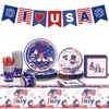 122 PCS 4th of July Plates and Napkins Sets, Independence Day Party Supplies Include Patriotic Plates and Napkins,Cups,Forks,Banner and Tablecloth for Patriotic 4th of July Party Decorations, Serve 24