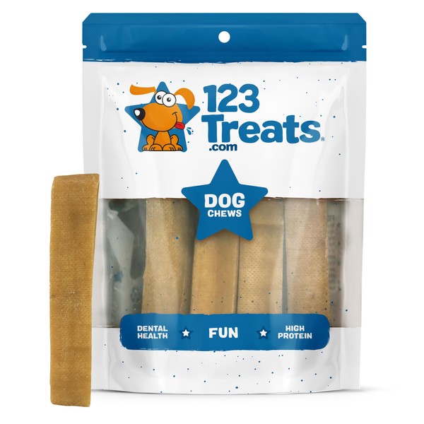 123 Treats Yak Cheese Dog Chews – 100% Natural Long Lasting Chew for Aggressive Chewers, Odor-Free, High Protein & Dental Cleaning Dog Treat, Yak Chews for Over 4 Months Dogs | (Medium, 4 Pack)