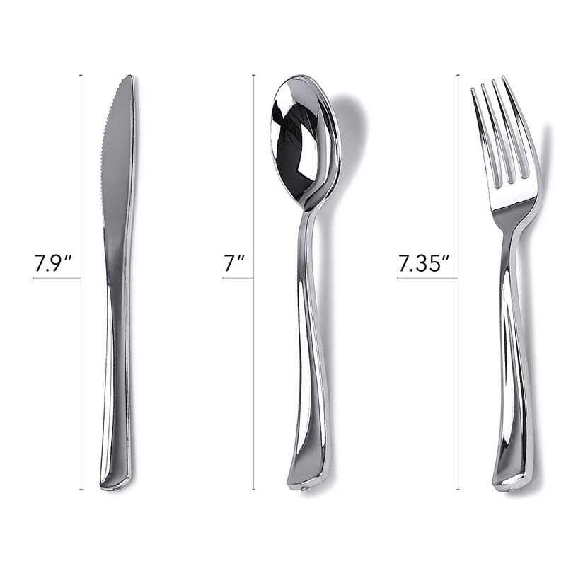 - Sturdy Silverware: Our metallic coated cutlery is heavy-weight, giving a feel comparable to real cutlery. This also prevents them from bending, breaking, or snapping.
