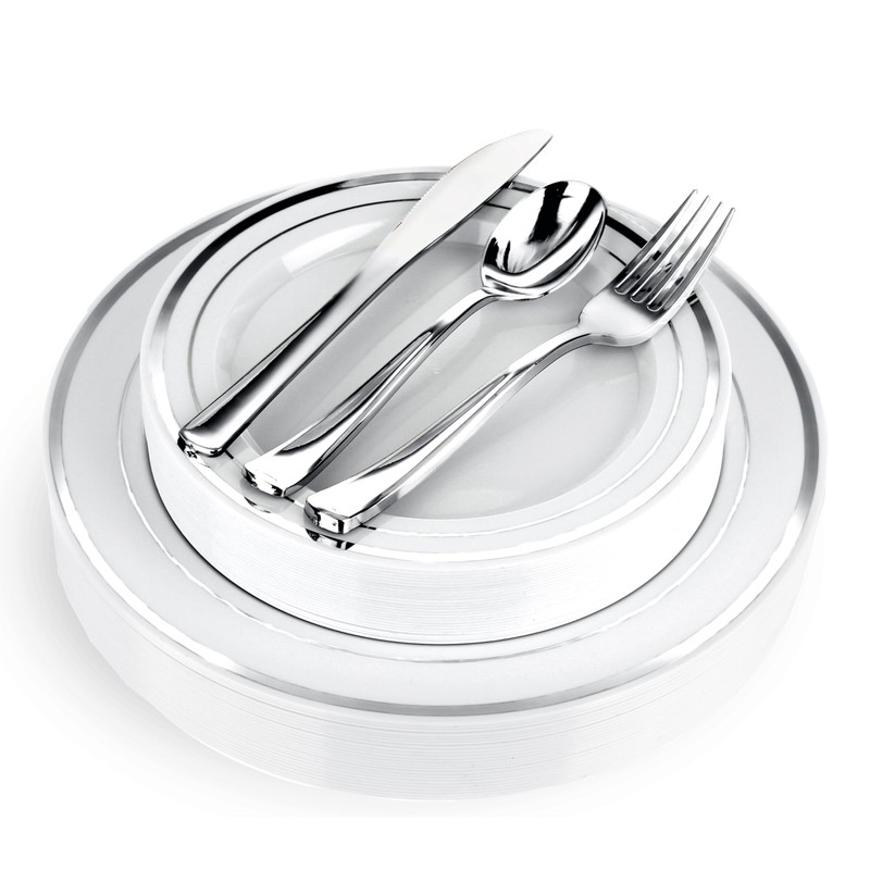 - Chic & Stylish: The lustrous shine on our plates and cutlery has an elegant feel that is perfect for formal and informal events like a wedding, holiday meal, banquet, picnic, or even everyday mealtime.