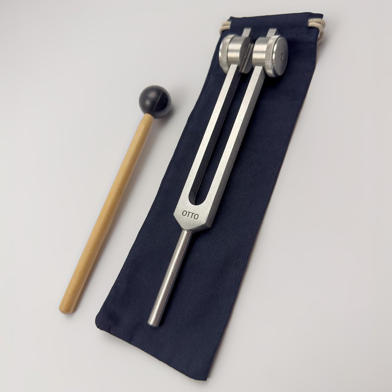 128 Hz OTTO Tuning Fork for Healing with Drawstring Pouch - OSTEOPHONIC application for Sound Healing and Biofield Therapy - Silver