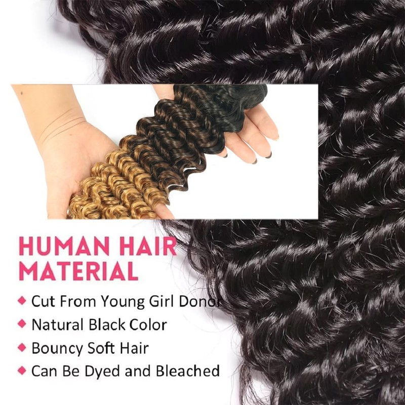 - Deep Wave Bundles Human Hair Material: Cut from Young Girls, 100% Unprocessed Brazilian Virgin Human Hair Bundles, Soft and Silky, Healthy and Durable, Without Shedding or Knotting, Can Be Used for 6-12 Months with Careful Care.