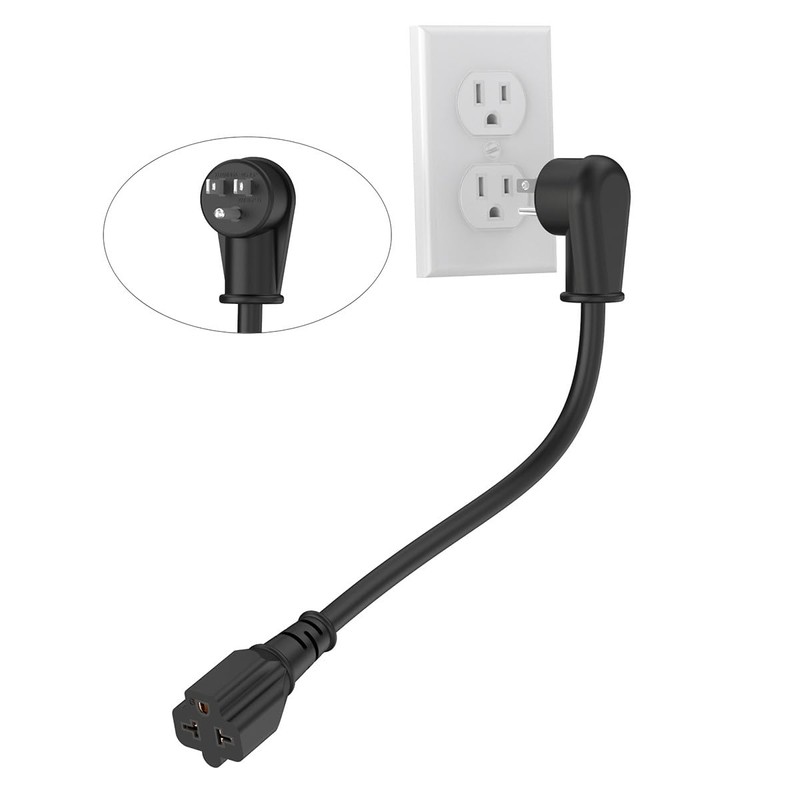 Molded 90 degree AC power adapter cable is short 15 amp plug adapter cord