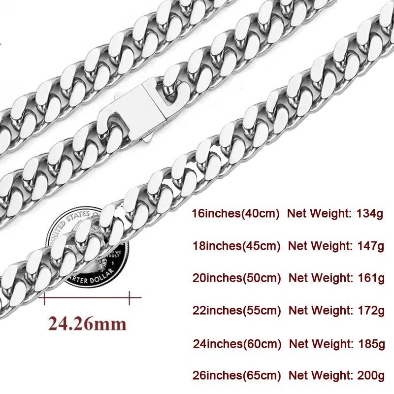 - Measurement: Chain Width: 12mm/0.47inch Thickness: 4.5mm Chain Length: 16inch, 18inch, 20inch, 22inch, 24inch, 26inch. You can choose the length you prefer. We use reinforced clasp, which will not bend not break.