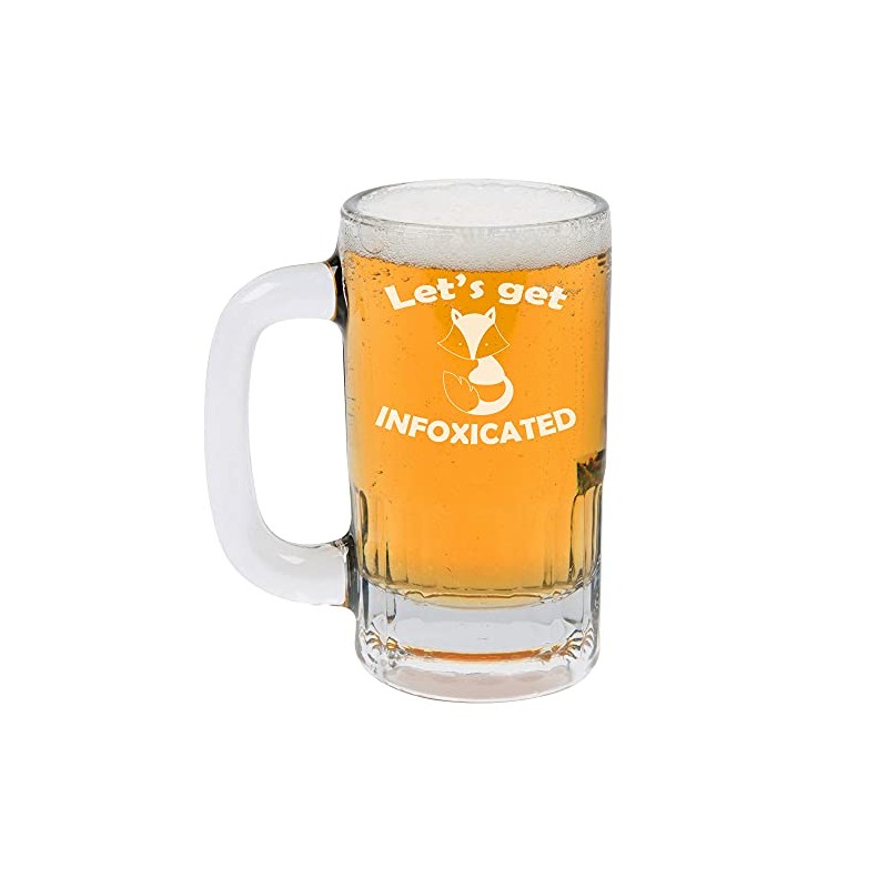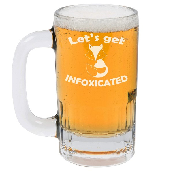- 12oz Beer Mug Stein Glass Let's Get Infoxicated Fox Funny