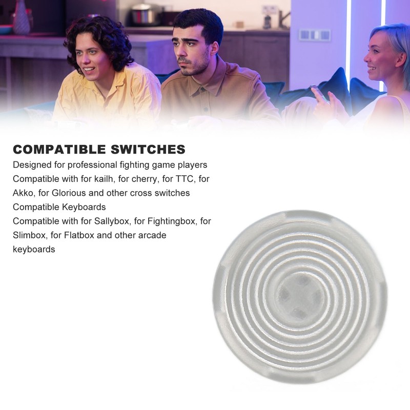 1、20.2mm Diameter: The actual diameter of the arcade button cover is 20.2mm, fits 24mm for hitbox button covers, easy to install. 2、Compatible Switches: Designed for professional fighting game players, fits for kailh, for cherry, for TTC, for Akko, for Glorious and other cross switches. 3、Compatible Keyboards: Arcade button cover set, compatible with for Sallybox, for Fightingbox, for Slimbox, for Flatbox and other arcade keyboards. 4、Sufficient Quantity: 12pcs for hitbox button covers are included, you can replace them easily to make your arcade keyboard look new. 5、Anti Slip: Arcade fighting keyboard button covers, injection molded transparent design, frosted surface, anti slip and anti fingerprints.