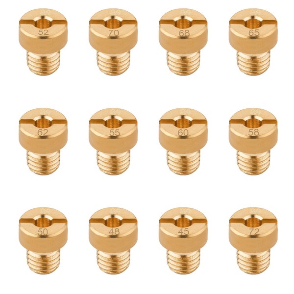 - Package Contents: You will receive 12 pieces of carburetor main jets in 12 models, including 45, 48, 50, 52, 55, 58, 60, 62, 65, 68, 70 and 72, sufficient and varied to meet your needs.