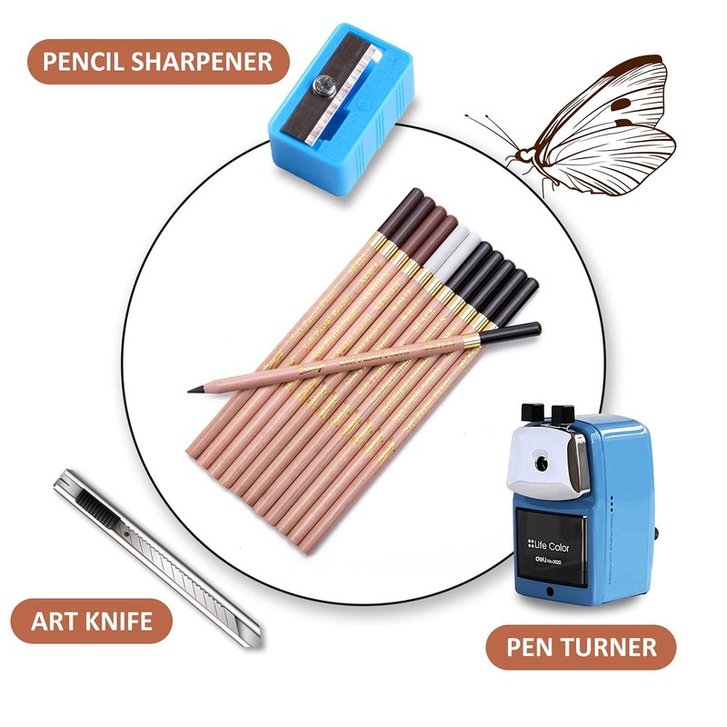 - ✏ Charcoal Pencil Design Style - Charcoal pens are no longer only black.Colored charcoal pens have the texture and effect of ordinary charcoal pens,but also have a different color from color pencil. Bring more different levels and lines to painting.