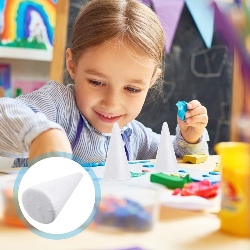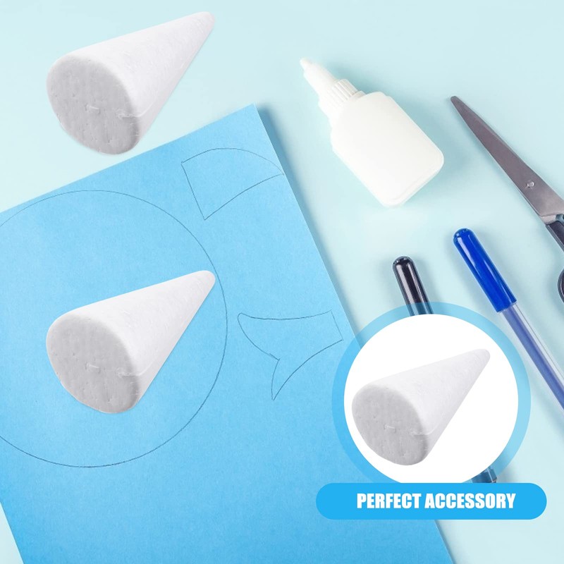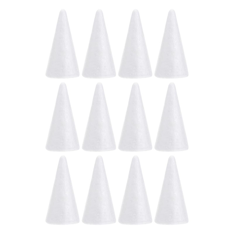 12pcs Foam Cone White Polystyrene Foam Cone Kids DIY Christmas Tree Modeling Handmade Toy Supplies (10cm High)