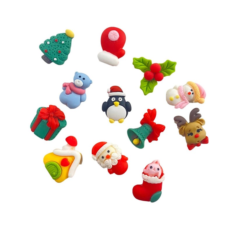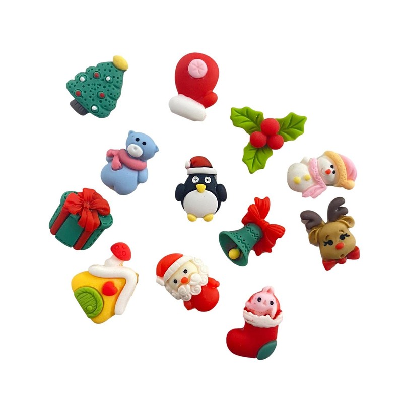 - 12pcs Kawaii Mixed Christmas Flatback Resin Embellishments Cabochons for Crafting