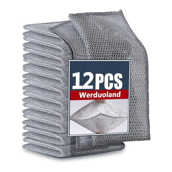 12Pcs Multifunctional Non-Scratch Wire Dishcloth Multipurpose Wire Dishwashing Rags for Wet and Dry Wire Mesh Knit Cleaning Cloth Multipurpose Wire Dishwashing Rags for Wet and Dry