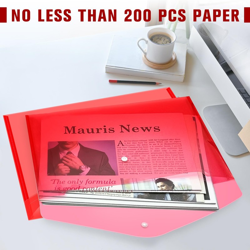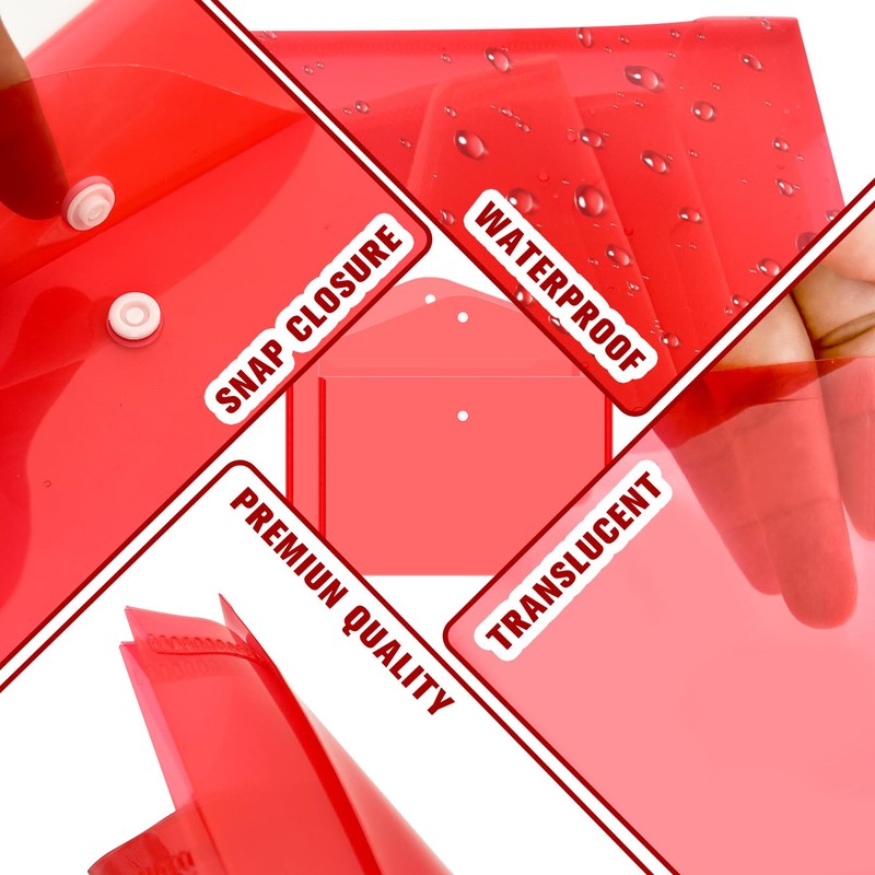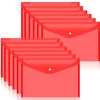 12pcs Plastic Filing Envelopes with Snap Button Closure ,Clear Document Folders for Letter A4 Size Files ,Poly Folders,for School and Office Supplies(Red)