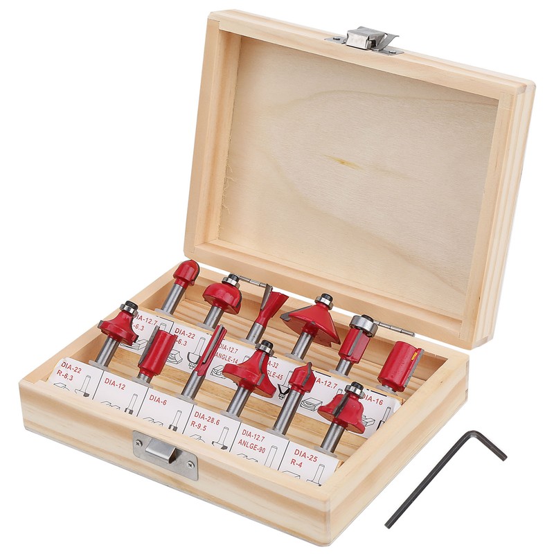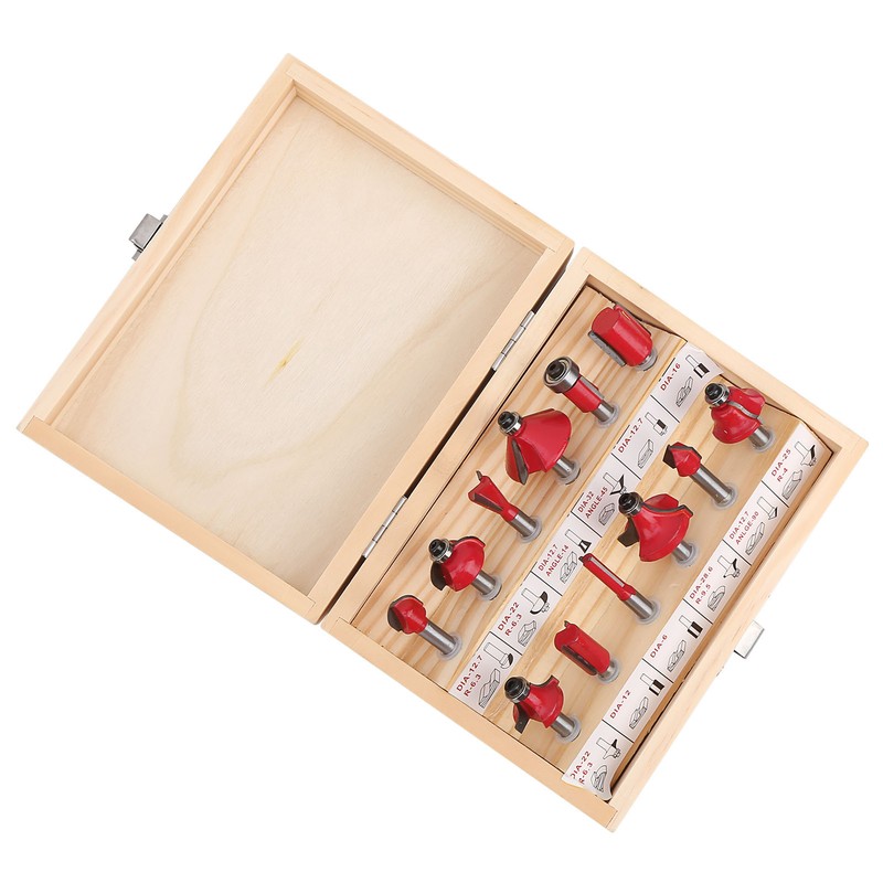 1、Made of high quality carbon steel, high hardness and durable to use. 2、There is 12 different router bits for your choice. 3、High grade blade with accurate cutting, easy to operate. 4、There is a box to store, convenient to take. 5、Suitable for solid board, density board, MDF, chipboard, etc.
