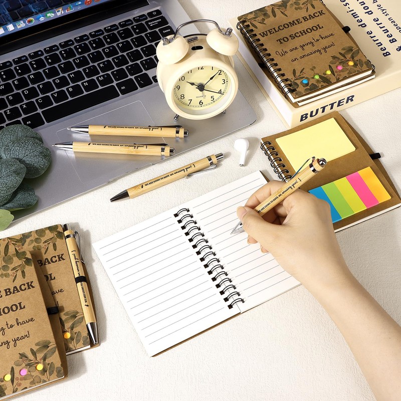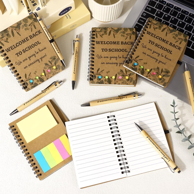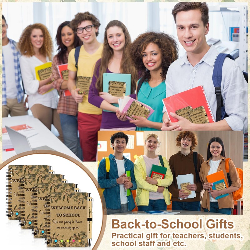 - Functional School Essentials: Crafted with 300GSM durable kraft paper notebooks and smooth-writing pens, these spiral notebooks bulk sets withstand daily classroom use. The soothing eucalyptus leaf pattern and Welcome Back to School motivational quotes create notebooks students actually want to use, no more lost supplies