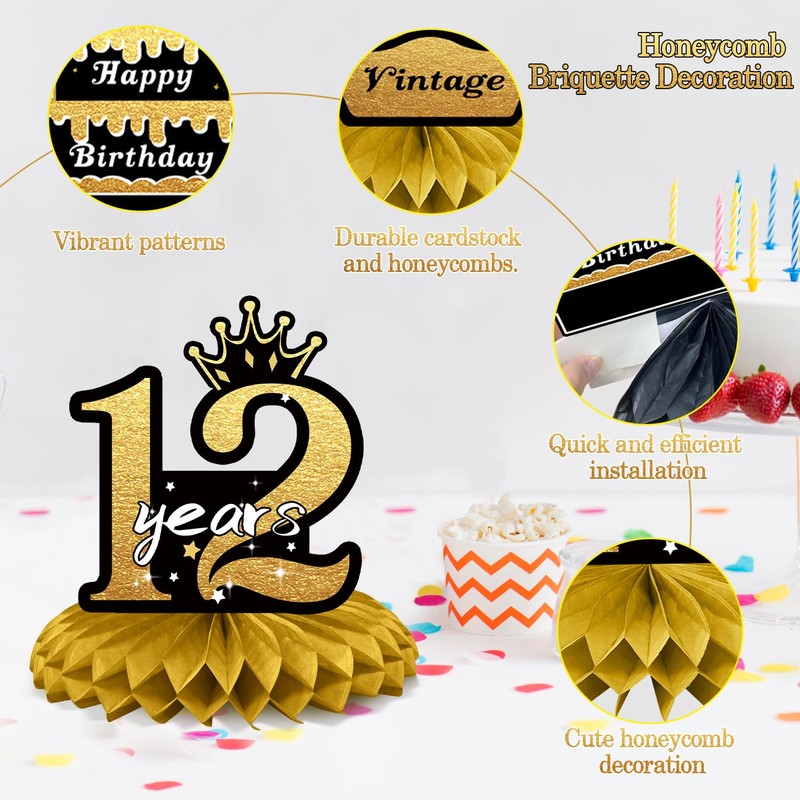- 【12th Party Decoration】This versatile honeycomb centerpiece is perfect for daughters, sons, friends, and more. It can be used as a thoughtful birthday decoration, stylish photo prop, party centerpiece, or keepsake for the special day.