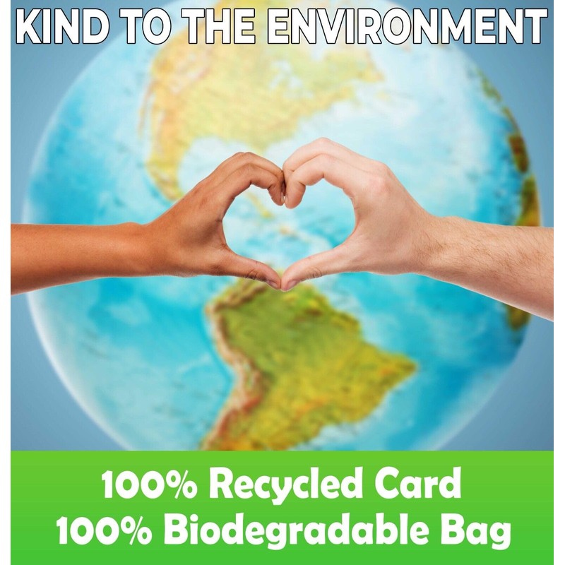 - ECO FRIENDLY: We only use 100% Recycled Card and Paper and a compostable bag for protection.