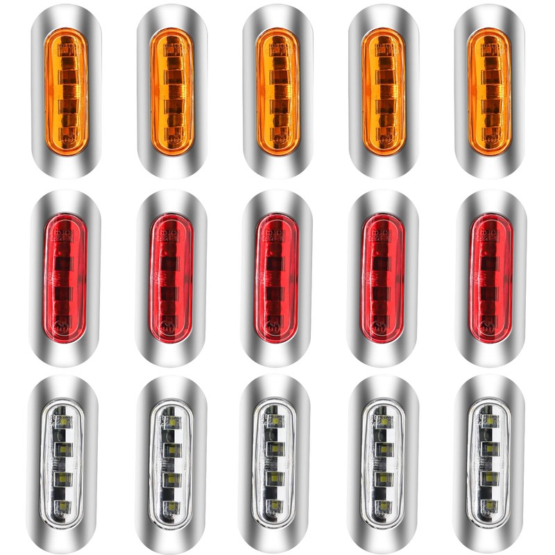 12V/24V Side Marker Lights Amber+Red+White,4LED Cab Marker Lights Front Rear Light Position Clearance Lamp Interior Lights with Chrome Bezel for Auto Car Bus Truck Lorry Trailer Boat Deck Courtesy