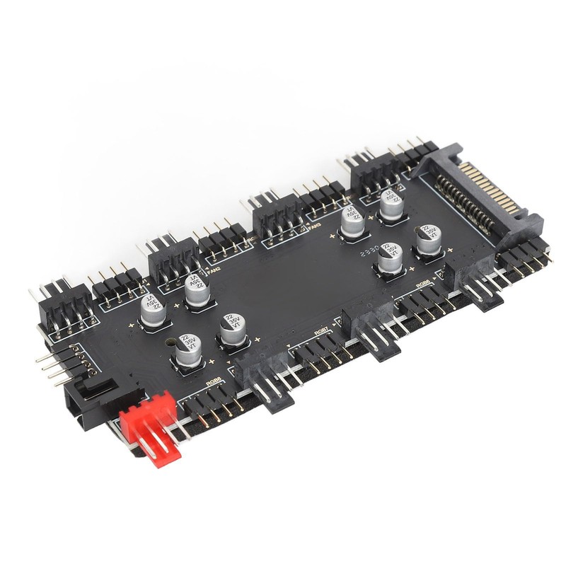 12V 4PIN ARGB and PWM Hub with SATA Power, 2-in-1 Hub 8 Way Sync CPU Cooling Fan for Addressable RGB Lighting PCB Splitter, PWM RGB Case Fan Hub