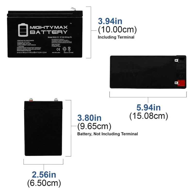- Dimensions: 5.94 inches x 2.56 inches x 4.02 inches. Terminal: F1. Listing is for the Battery only. No wire harness or mounting accessories included.