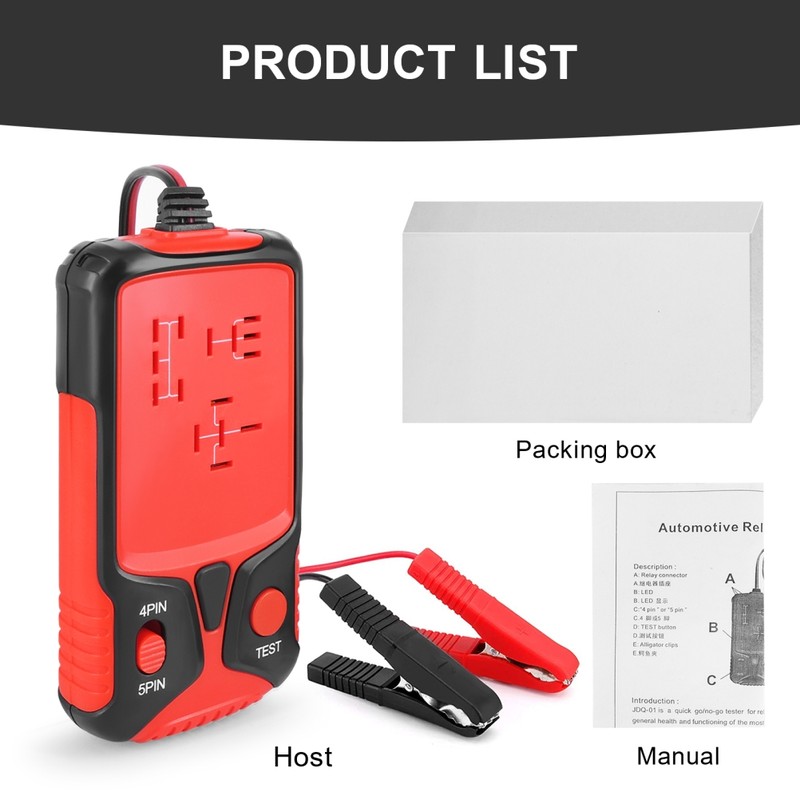 1、1. This relay tester is a quick test tool to test automotive relays and let you know the status of automotive relays. 2、2. By connecting the car's continuous battery (11V-15V) to the relay coil, the detector can correctly check the contact function of the relay. The tester will observe the contact data, closing time, relay inertia, etc. of each test phase. 3、3. If the test is qualified, the green light is on, if the test fails, the red light is on. Designed to test the condition of automotive relays. Test to properly control the opening and closing of the relay. 4、4. The car battery must be a 12V battery, and the voltage must be between 11-15V. The coil resistance is preferably above 20 ohms. 5、5. A convenient and intuitive diagnosis method is provided, which is time-saving and economical. Small size, compact structure, easy to carry, can be tested anywhere.