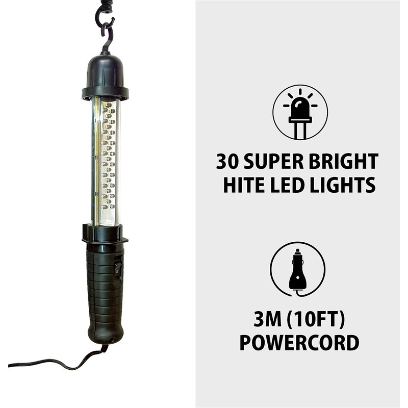 - 10 FT POWER CORD- A generous 10 foot (3m) power cord plugs into your vehicle’s 12V DC receptacle with ample length for you to position the light right where you need it to illuminate your work area or campsite, and a manual on/off switch lets you conserve your vehicle’s battery by switching the light off when you don’t need it