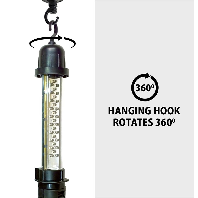 - ADJUSTABLE POSITIONING- With an ergonomic handle and built-in freely rotating hook, you can use this versatile corded light as a handheld flashlight or handsfree portable lantern with 360-degree coverage to light up the widest possible area