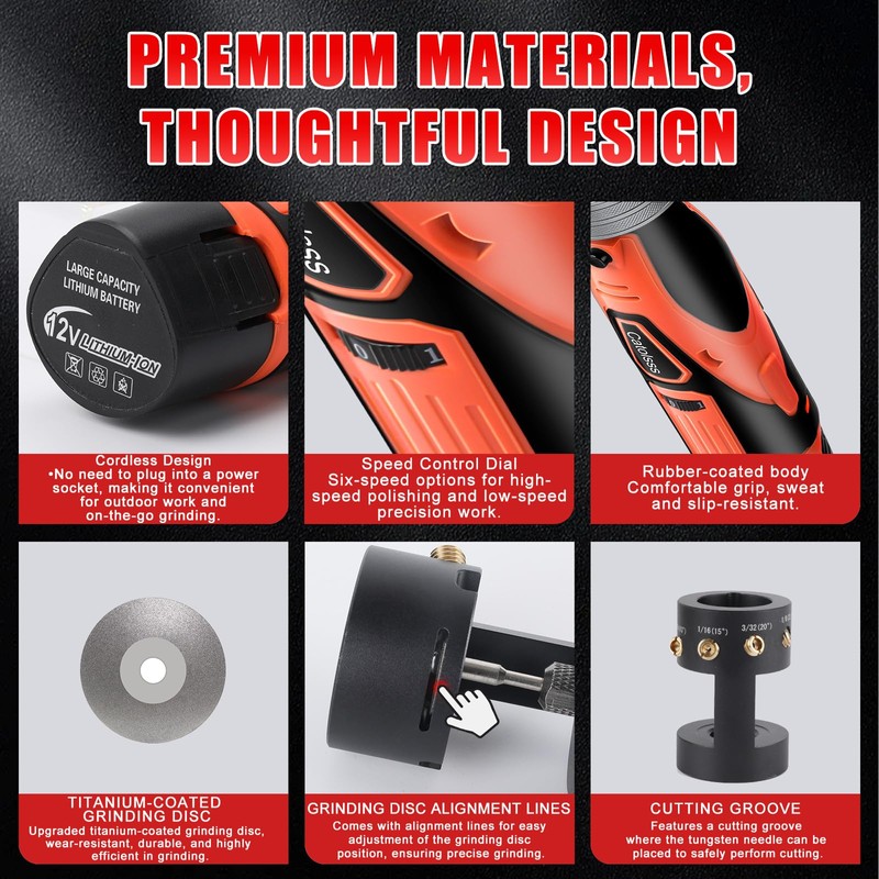 • Specialized forTIG welders and DIY enthusiasts: Cordless tungsten sharpening grinder is a hand-held tool, very convenient.Tailored exclusively for TIG welding professionals and argon arc welding hobbyists, our sharpener offers unparalleled precision and convenience,you can grind more tungsten needles with more perfect angles faster. Help you improve welding efficiency.