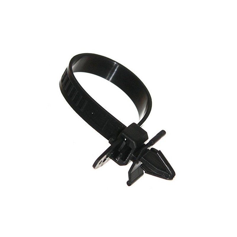 Material: Plastic Colour: Black Additional: With Cable Ties Length: 120 mm clip for: 6 – 8 mm holes Cable Ties for: Hoses up to 30 mm
