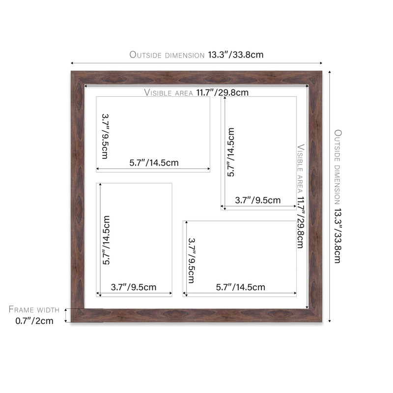 12x12 Inch 4 Opening Photo Collage Frame, Display Four 6x4 Inch Photos, Multi Aperture Family Picture Frame, Walnut