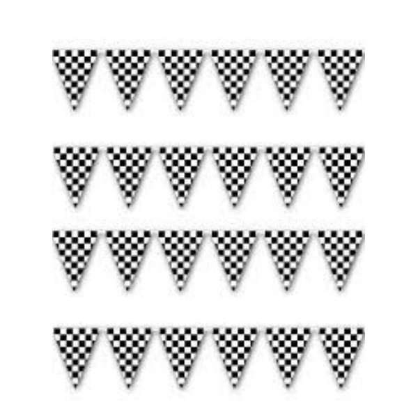 - Set of 48 Black & White Checkered 12x18inch Pennant Flags on a 100ft string