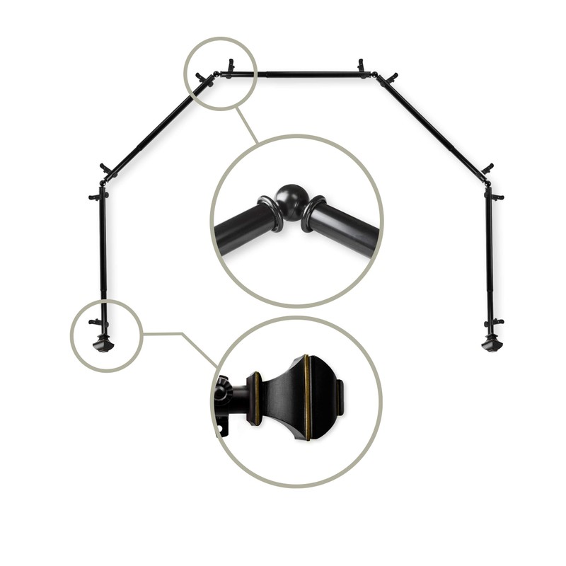 13/16" Moyat 5-Sided Bay Window Curtain Rod - Black