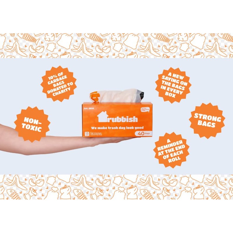 13 Gallon Eco-Friendly Drawstring Kitchen Trash Bags (40-Count) - PFAS Free, Non-Toxic