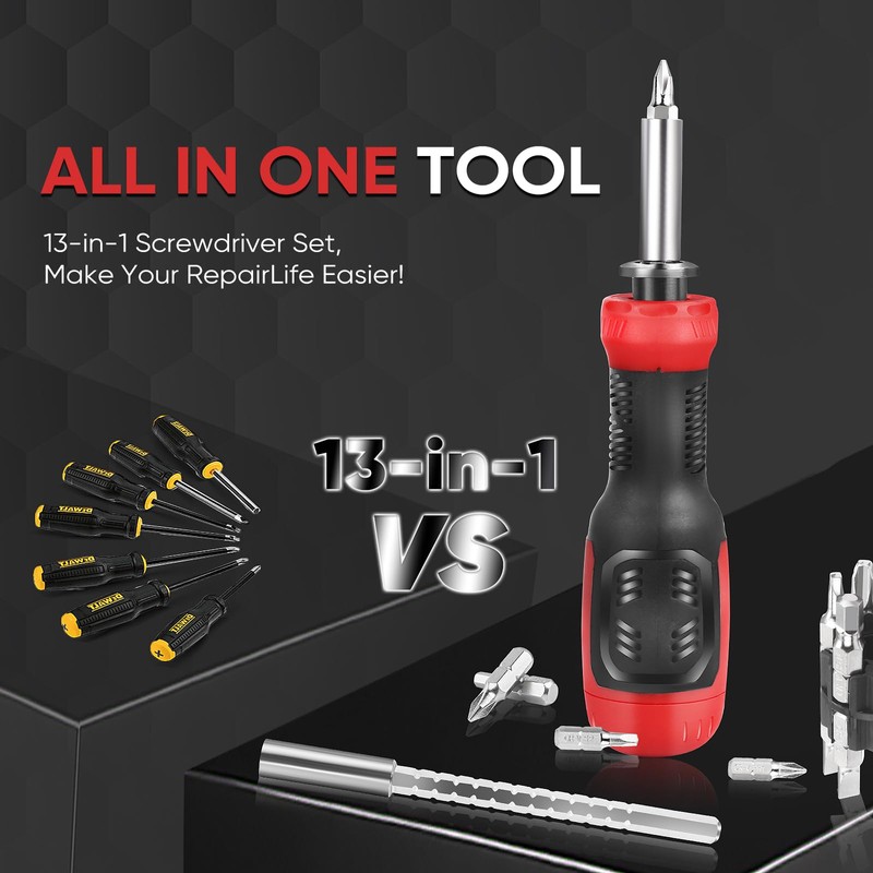 13 in 1 Adjustable Multi Screwdriver Set Multitool with Torx Security Flat Head Phillips Hex Square and 1/4 Inch Nut Driver for Home Repair and DIY Projects (13 in 1 Screwdriver Set)