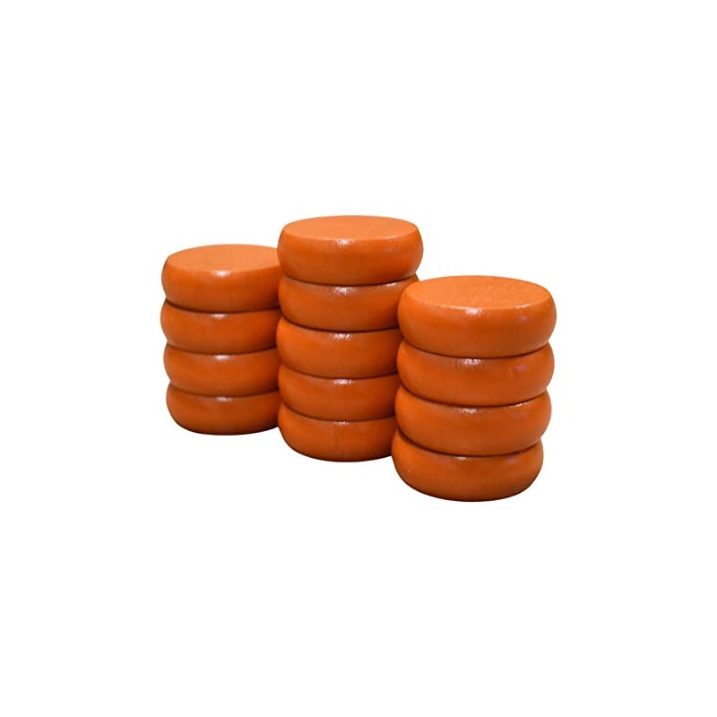 - Includes: A half set (for 1 player) of 13 orange small crokinole discs for a traditional style board (1 extra in the set in case you lose one). Please Note: The discs are flat on both sides which is tournament standard