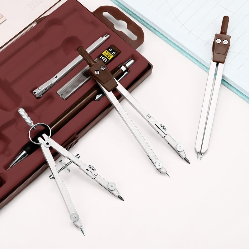 - Quality tool sets: the compass kit set is made of zinc alloy steel which is sturdy, durable and easy to carry; The rulers and protractors tool set is made of PS material which is light-weight, clear and heavy-duty