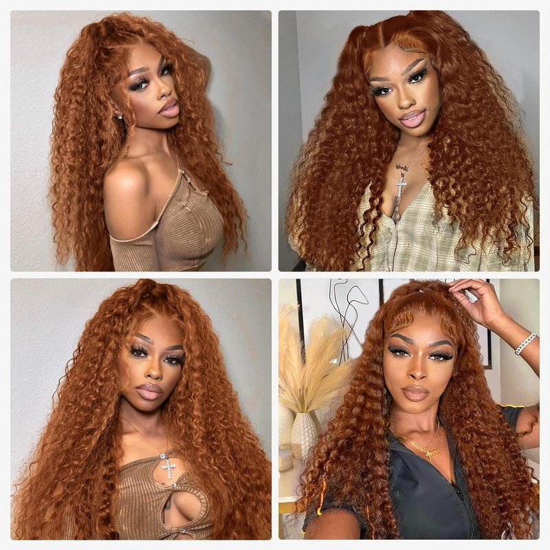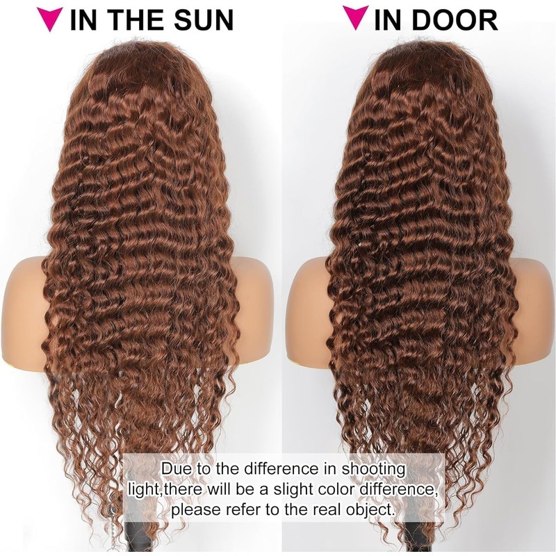 13 x 4 Lace Front Wig Human Hair Wig Deep Wave HD Lace Front Wig Brown 180% Density Light Brown Wig Women's Human Hair Wig Women's Real Hair 24 Inches (60 cm)