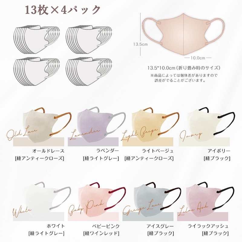 マスク13枚×4パック【ノーズカット改良済・息しやすい】お徳用52枚 大容量 3Dマスク【適格請求書発行事業者】不織布マスク 定番マスク 立体マスク 血色マスク バイカラー マスク カラー 立体 くちばし 使い捨てマスク 3D マスク 小顔 チークマスク 耳が痛くならない カラーマスク (バイカラー, アイスグレー)