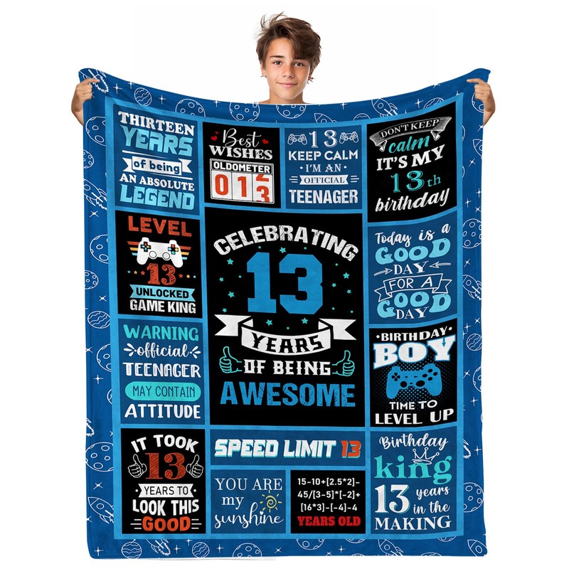 - Cool Boy's 13th Birthday Gift Idea: Make his 13th birthday extra special with this uniquely designed blanket tailored to his interests. Featuring a gaming theme, this 13 year old boy gifts blanket is sure to bring a smile to any game enthusiast's face