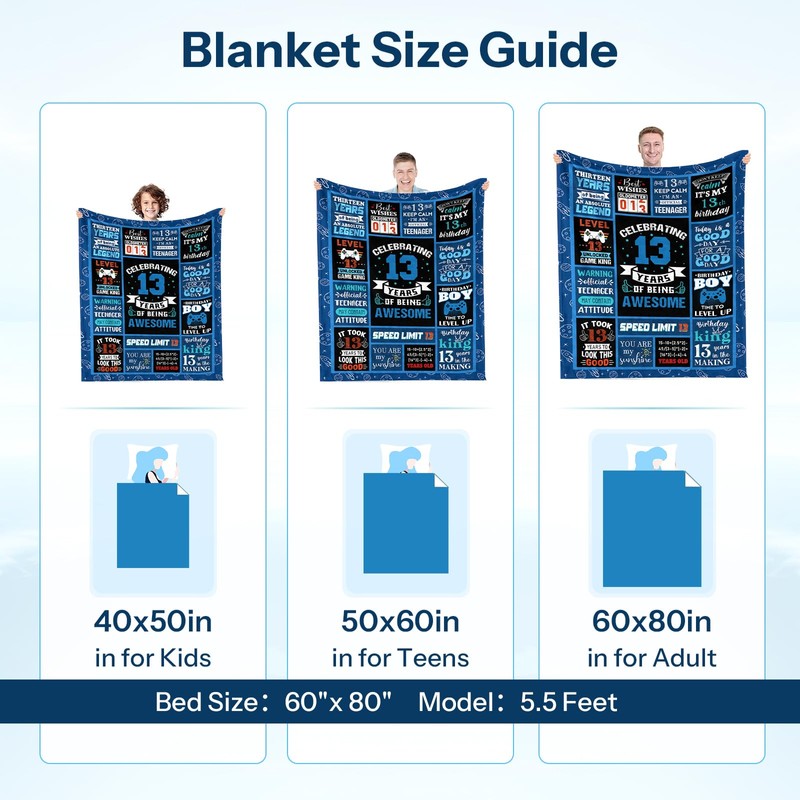 - Intimate Companion in Life: Suitable for indoor and outdoor, this gift for 13 year old boy blanket is versatile and practical. Whether reading, gaming, or taking a nap, it provides warmth and comfort. It's ideal for camping, traveling, or any adventure