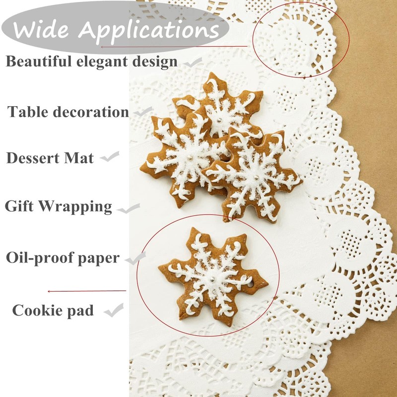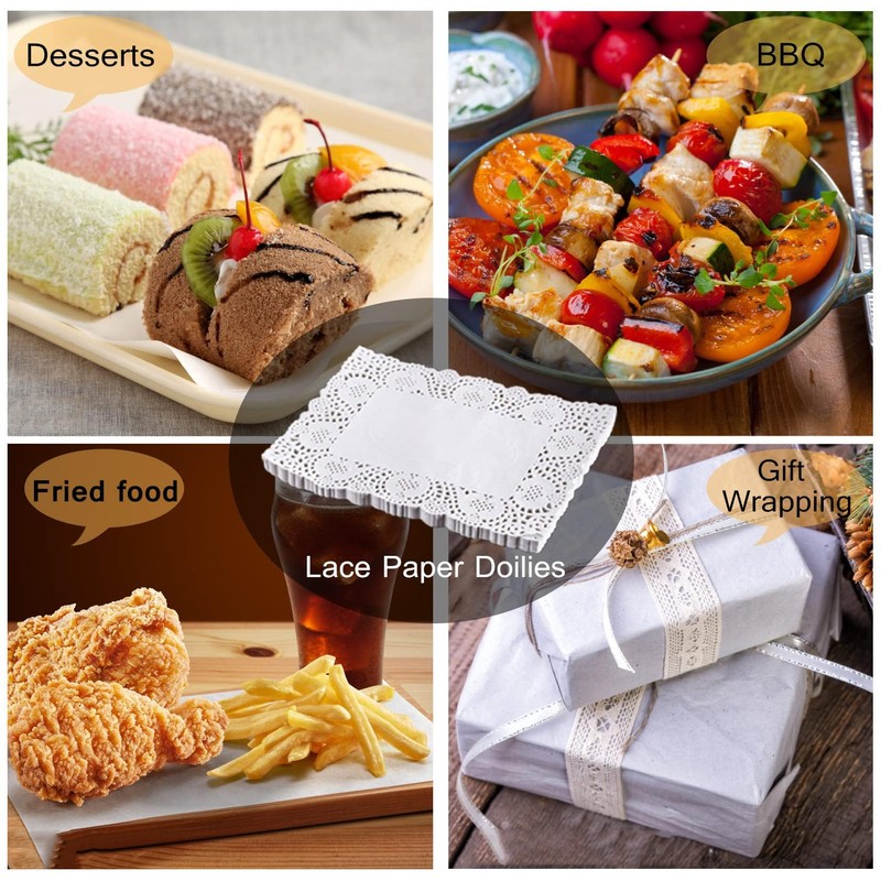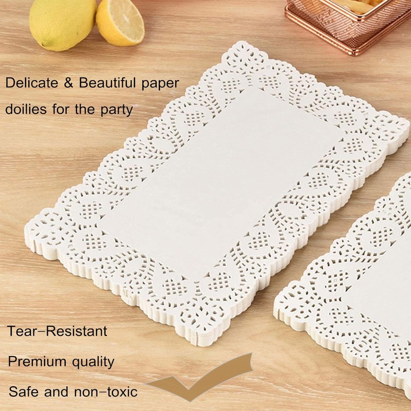 - ✨ Durable for Using : These doilies are thick enough to provide a solid support to your tableware. Safe and premium quality, tear-resistant,it can be disposable.Can meet your Cakes, Desserts, Baked, Grilled, Fried Food's needs. Provide a barrier between dishes and wooden tabletops food. And the paper doilies can be used until the end of the party.