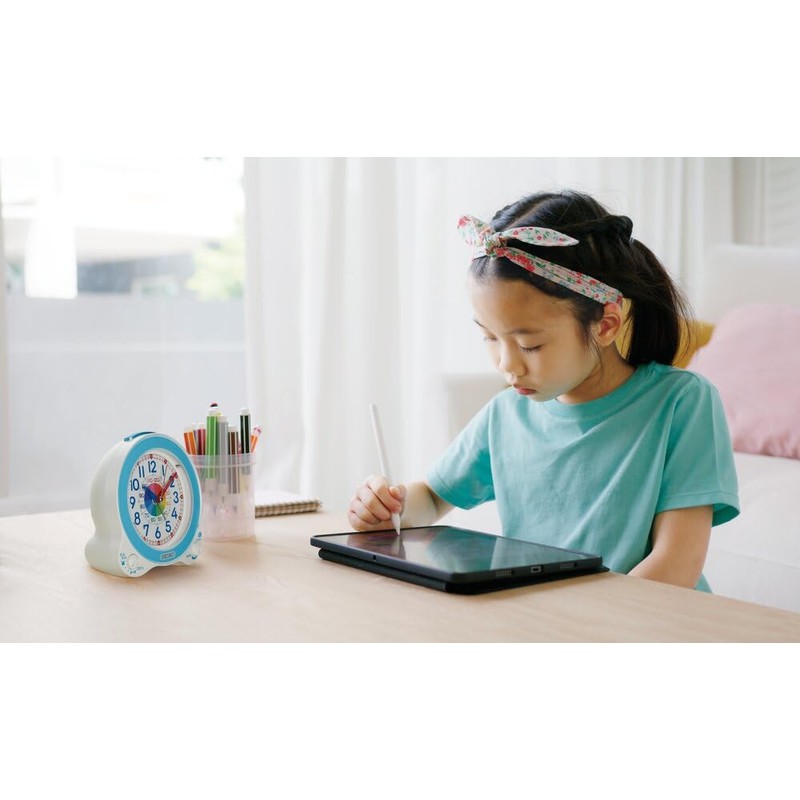 セイコークロック 目覚まし時計 置き時計 知育 アナログ 薄青 134×130×85mm KR524L
