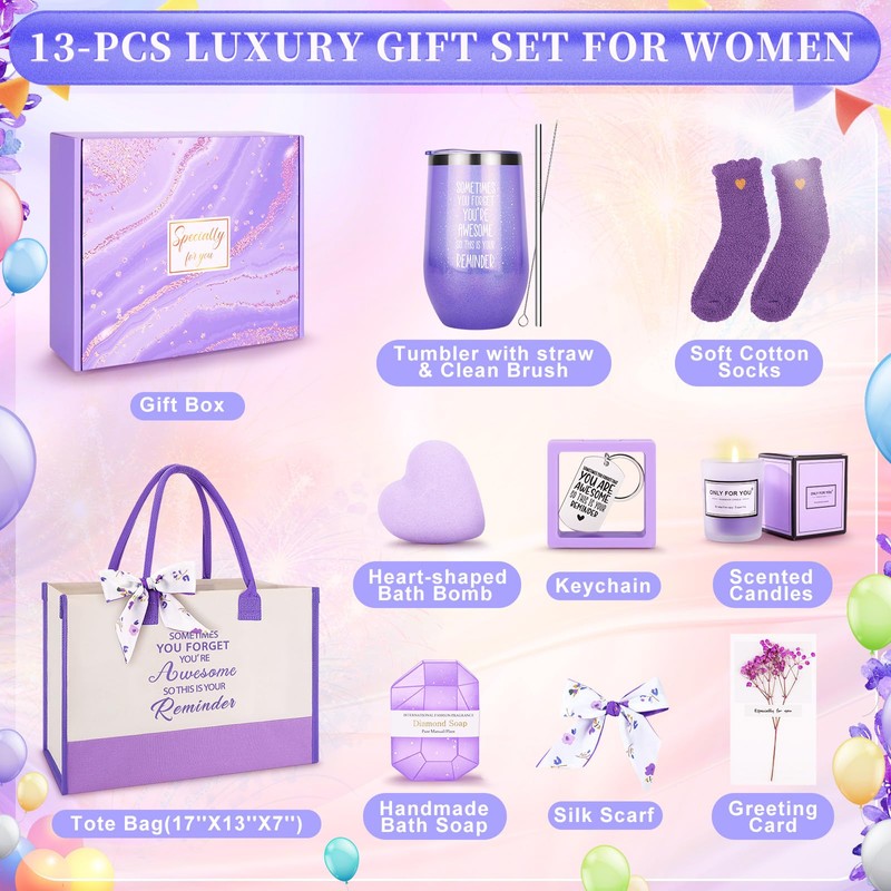 - 🪻【 INSPIRATIONAL GIFTS ON ANY OCCASION 】🎁This purple care package religious scripture gifts is an exclusive! You won't find it anywhere else. 13PCS Unique Encourage Gifts for Women provide her with strength, hope and love. It's the perfect way to show your love and appreciation for the special woman in your life. Meaningful gifts to make someone feel special, inspire her faith. Best Gifts for Birthday, Valentines Day, Mother's Day,